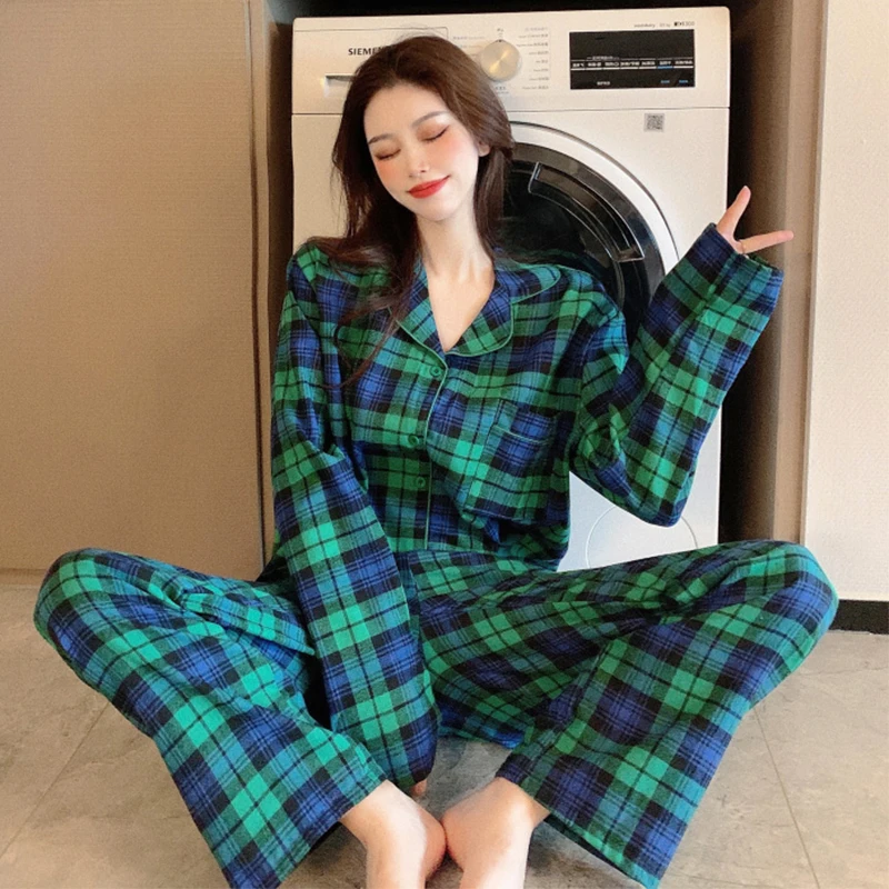 If You will buy for Casual Pant Plaid, then 2021 Autumn Casual Home Pj Sets Pocket Plaid Sleepwear 2 Piece Set Pajamas Lapel Collar Shirts Pants Homewear Womens Clothing is possible make you like